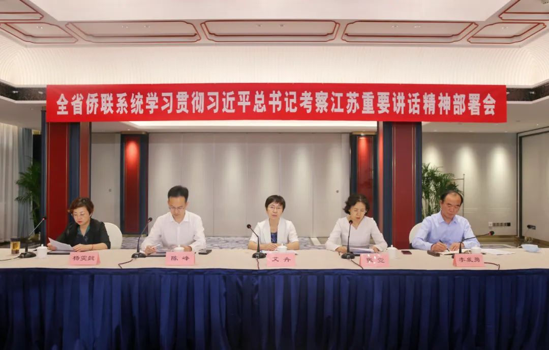会议指出,习近平总书记深入江苏考察并发表重要讲话、作出重要指示,这是江苏发展历程中具有里程碑意义的大事,充分体现了总书记和党中央对江苏工作的高度重视、巨大关怀。总书记对江苏各项工作取得的成绩给予肯定,列举了江苏发展的显著特色和优势,这是对全省党员干部群众的强有力感召和激励。习近平总书记考察江苏重要讲话重要指示,站位高远、思想深邃,内涵丰富、语重心长,具有很强的政治性、战略性、指导性、针对性,是总书记擘画强国建设、民族复兴宏伟蓝图在江苏的具体化,是我们在推进中国式现代化进程中走在前做示范、谱写“强富美高”新江苏现代化建设新篇章的科学指引和行动指南。全省各级侨联要切实提高政治站位,深刻认识习近平总书记考察江苏的重大政治意义、重大理论意义和重大实践意义,充分感受人民领袖对江苏工作的高度重视和巨大关怀,把学习宣传贯彻习近平总书记重要讲话重要指示精神作为当前和今后一段时期重大政治任务,紧锣密鼓抓好研究部署,全面深入传达学习,广泛开展宣传宣讲,迅速掀起学习宣贯工作热潮。