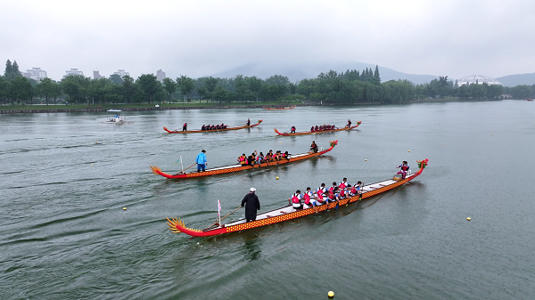 本次竞赛项目为公开组12人龙舟500米直道赛,共设4条赛道,采取两轮轮次赛制的方式进行。随着裁判员发令枪响,一连串急促的鼓点在玄武湖面响起,一条条龙舟如箭离弦、破水而出,在水面上留下一道道优美的水波。运动员们动作整齐、手起桨落,岸上观众摇旗欢呼、加油助威,一时间,鼓声、水声、呐喊声、欢呼声此起彼伏,连成一曲激昂的交响乐章,为现场观众带来一场酣畅淋漓的视觉盛宴。
