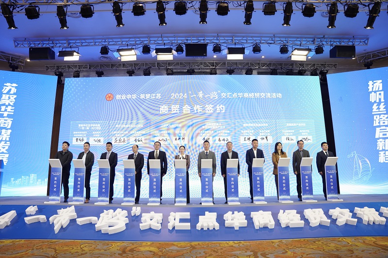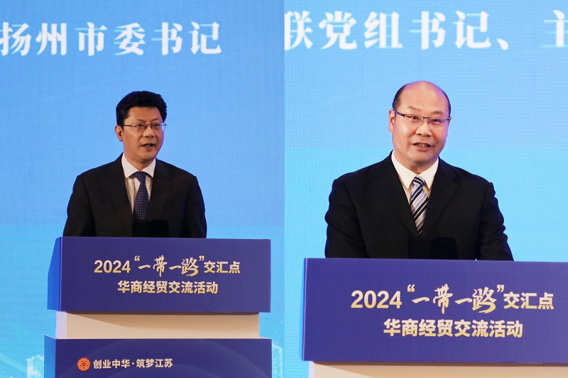 11月10日,2024“一带一路”交汇点华商经贸交流活动在扬州举办。活动由中国侨联指导,中国侨商联合会、江苏省侨办、江苏省侨联、中共扬州市委、扬州市人民政府共同主办。中共扬州市委书记王进健出席活动并致欢迎辞。中国侨联副主席程红,江苏省委常委、省委统战部部长胡广杰出席活动并讲话。