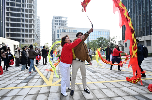 在南京行知苑文化交流中心 “小树林・文化角落” ,一场别开生面的非遗体验活动更是让大家直呼 “过瘾”。广场上,老师们现场展示舞龙旗,大家兴致勃勃地跟着舞动,彩带龙在手中翻飞盘旋,洋溢着青春活力。