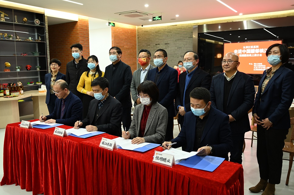 会上,泰国江苏商会、镇江市侨联、镇江市旅游协会、江苏大学文学院(语言文化中心)、江苏恒顺醋业股份有限公司签订了《关于共同推进经贸、文化、旅游合作协议书》。
