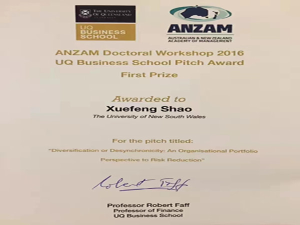 “欲戴王冠,必承其重。”荣耀的背后是一串串充满汗水的足迹。今年是邵雪峰离开家乡海外求学的第十三年。他在澳大利亚新南威尔士大学先后获得硕士、博士学位,悉尼科技大学博士后。攻读博士学位期间,还拿到了新南威尔士全额奖学金,被校方在校报上以大篇幅进行报道。博士毕业论文更获得澳大利亚新西兰管理学会毕业论文一等奖、战略领域最佳论文。