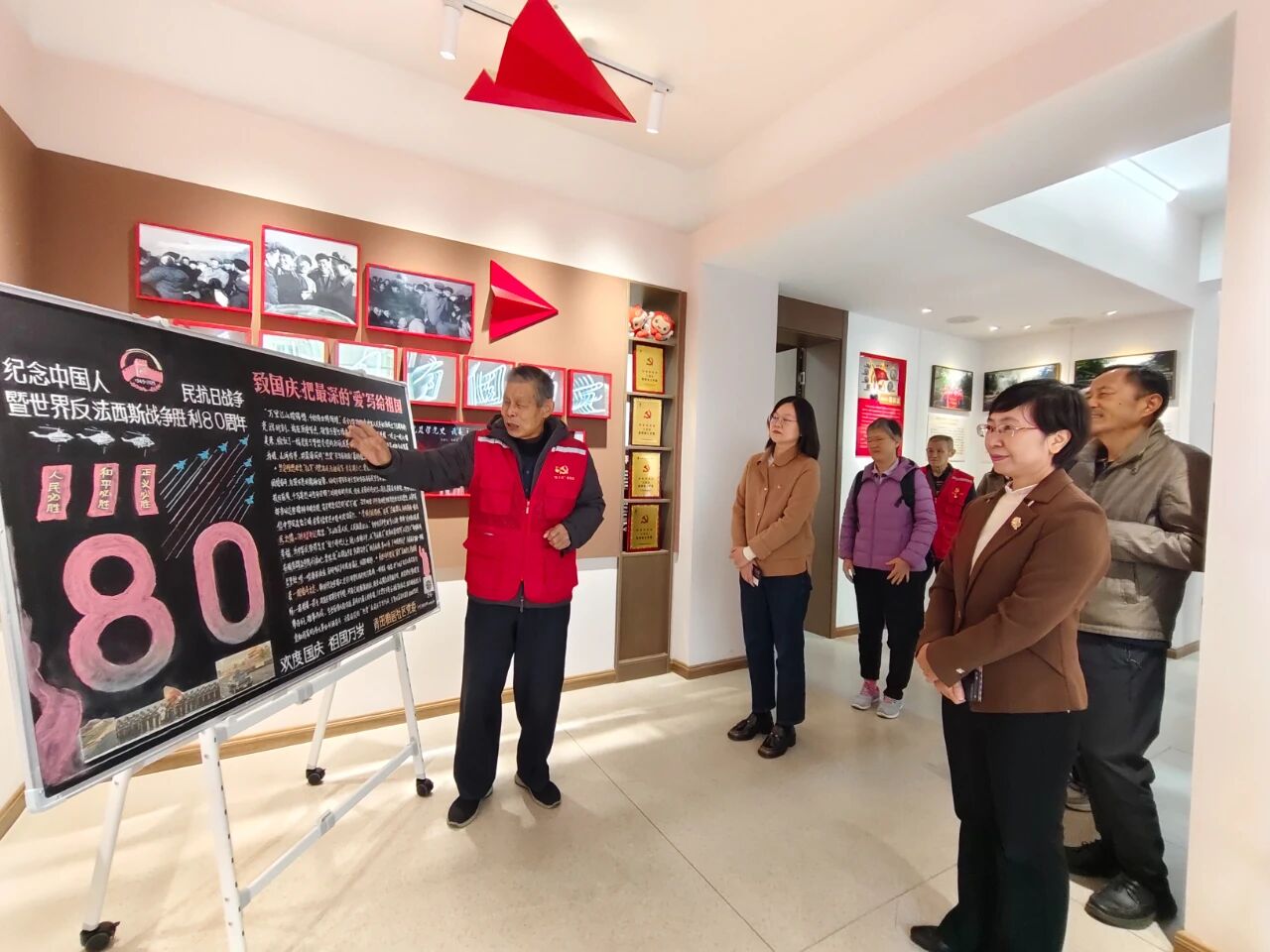 社区的“板报爷爷”创作的《抗战胜利80周年》主题板报以生动图文唤醒红色记忆。
