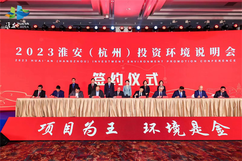 3月24日下午,由淮安市委、市政府主办的诚意满“淮” 共创未来——2023淮安(杭州)投资环境说明会在杭州黄龙饭店举行,大会集中签约项目47个,总投资521.87亿元,合作成果丰硕。