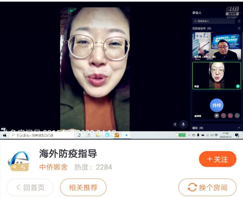 4月12日下午1时,江苏省侨联青年委员会、常州市侨联侨界青年联谊会、武进区侨联、武进区侨界青年联谊会联合常州侨舍海外归国人员就业创业促进中心和常州中侨世纪因私出入境服务有限公司共同举办了面对全球疫情华侨、留学生如何理智应对第三期“连麦华侨留学生之疫情下真实的海外生活”直播分享会。