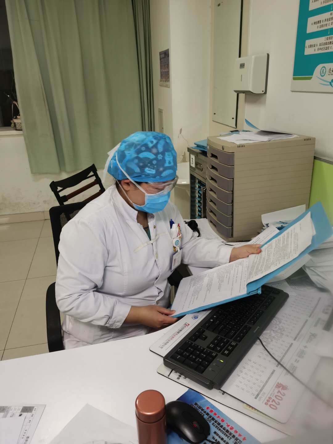 大年初一,聂医生就到一线的发热门诊上班,发热病人已经排成一条长龙。从下午5:30接诊至初二早上8点,期间有连续9个小时,没吃一口饭、没喝一口水、没上过一次厕所。由于长时间穿隔离服,戴着手套,手指麻木得无法再敲击键盘开医嘱签字,看着外面依然很长的待诊队伍,她只是脱下手套透个气,继续坚持在岗位上值守……初二早上8点交接班后,继续坚持填写整理患者信息病历材料,协助院保健科第一时间上报疫情。