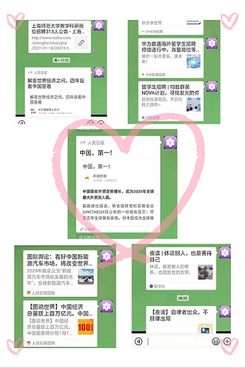 江苏大学根据高校留学生亲属多的现状,同时借校关工委关心下一代的工作职能,共同搭建了江大“心连心”亲属微信群,其宗旨:一是关爱留学生亲属;二是充分利用校党委宣传部和校学工处就业服务中心的资源优势,通过线上平台关爱海外学子,传达中国好声音,让他们了解中国的发展变化,同时介绍国内就业信息,让更多的优秀海外学子学成回国,报效祖国!近日,已开始运行,收到留学生亲属的好评!