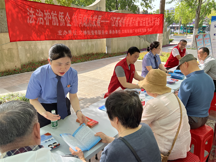活动特邀区检察院法律服务团队,在清源广场为广大侨眷、党员群众普及《宪法》《民法典》知识,提供“一对一”日常法务咨询公益服务;同时街道侨联组织普法志愿者向现场群众发放了《民法典》《中华人民共和国归侨侨眷权益保护法》等普法宣传单页,并针对现场侨眷关注的热点问题,突出民法典中关于侨眷保护等有关规定条款的宣传,守护侨界群众的利益。