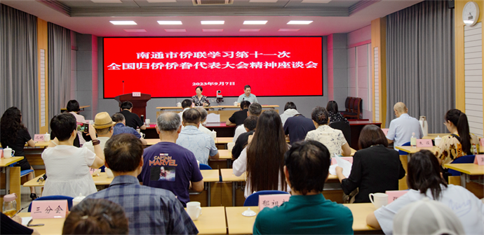 9月7日下午,南通市侨联召开座谈会,学习第十一次全国归侨侨眷代表大会精神并开展交流。南通市侨联党组书记、主席蔡宏伟出席并讲话,党组成员、主席助理曹博平主持会议。