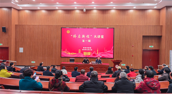 12月12日,海安市侨联举办“侨启新程”大讲堂暨“侨见海安”活动,全市侨联委员、侨界政协委员、区镇统战委员,侨商、侨眷代表等50余人参加。