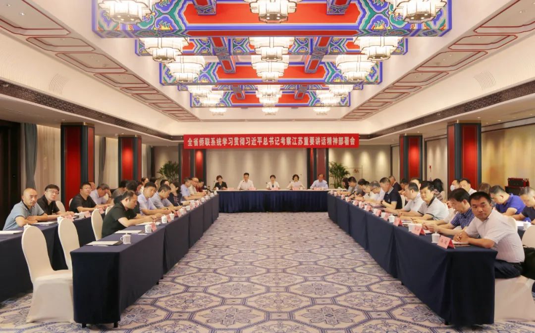 会议指出,习近平总书记深入江苏考察并发表重要讲话、作出重要指示,这是江苏发展历程中具有里程碑意义的大事,充分体现了总书记和党中央对江苏工作的高度重视、巨大关怀。总书记对江苏各项工作取得的成绩给予肯定,列举了江苏发展的显著特色和优势,这是对全省党员干部群众的强有力感召和激励。习近平总书记考察江苏重要讲话重要指示,站位高远、思想深邃,内涵丰富、语重心长,具有很强的政治性、战略性、指导性、针对性,是总书记擘画强国建设、民族复兴宏伟蓝图在江苏的具体化,是我们在推进中国式现代化进程中走在前做示范、谱写“强富美高”新江苏现代化建设新篇章的科学指引和行动指南。全省各级侨联要切实提高政治站位,深刻认识习近平总书记考察江苏的重大政治意义、重大理论意义和重大实践意义,充分感受人民领袖对江苏工作的高度重视和巨大关怀,把学习宣传贯彻习近平总书记重要讲话重要指示精神作为当前和今后一段时期重大政治任务,紧锣密鼓抓好研究部署,全面深入传达学习,广泛开展宣传宣讲,迅速掀起学习宣贯工作热潮。