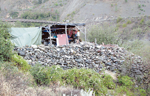 记者下车步行一段石路之后,攀上石堆高处,看不到石堆尽头,而在石堆之中,更留有一些凹陷痕迹,相信是当年矿工所造的引水槽,用来冲掉沙粒。