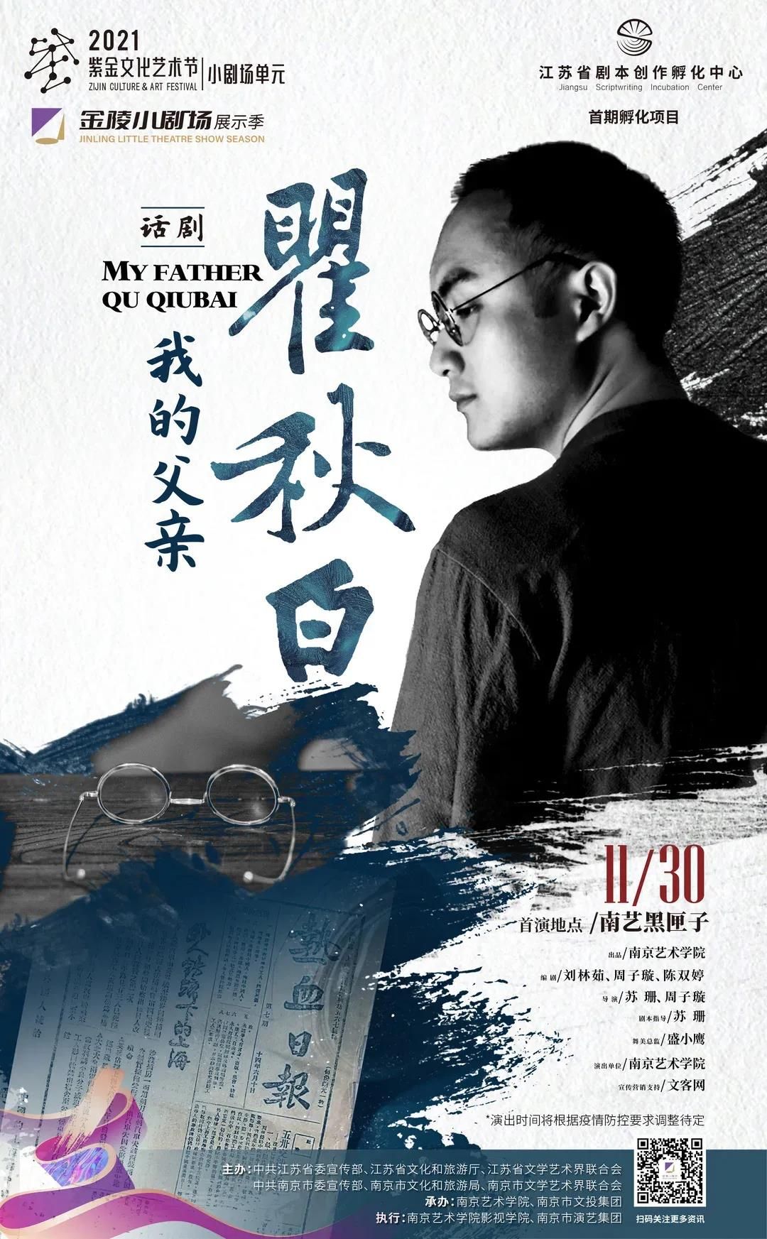 11月30日,“七一勋章”侨界获得者瞿独伊原型话剧《我的父亲瞿秋白》在南京艺术学院上演。省侨联副主席艾卉、省侨联二级巡视员李发勇及部分机关工作人员观看了演出。