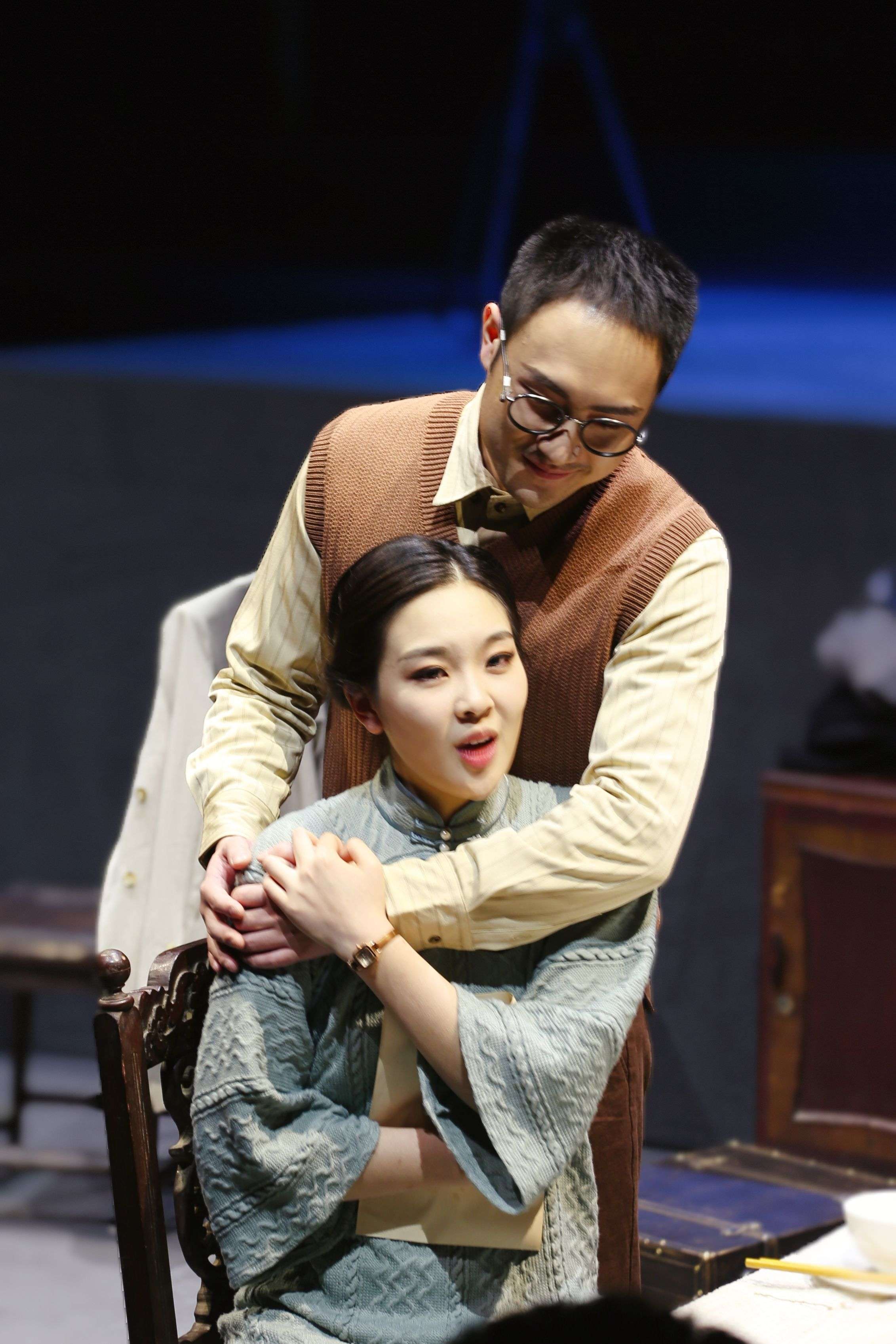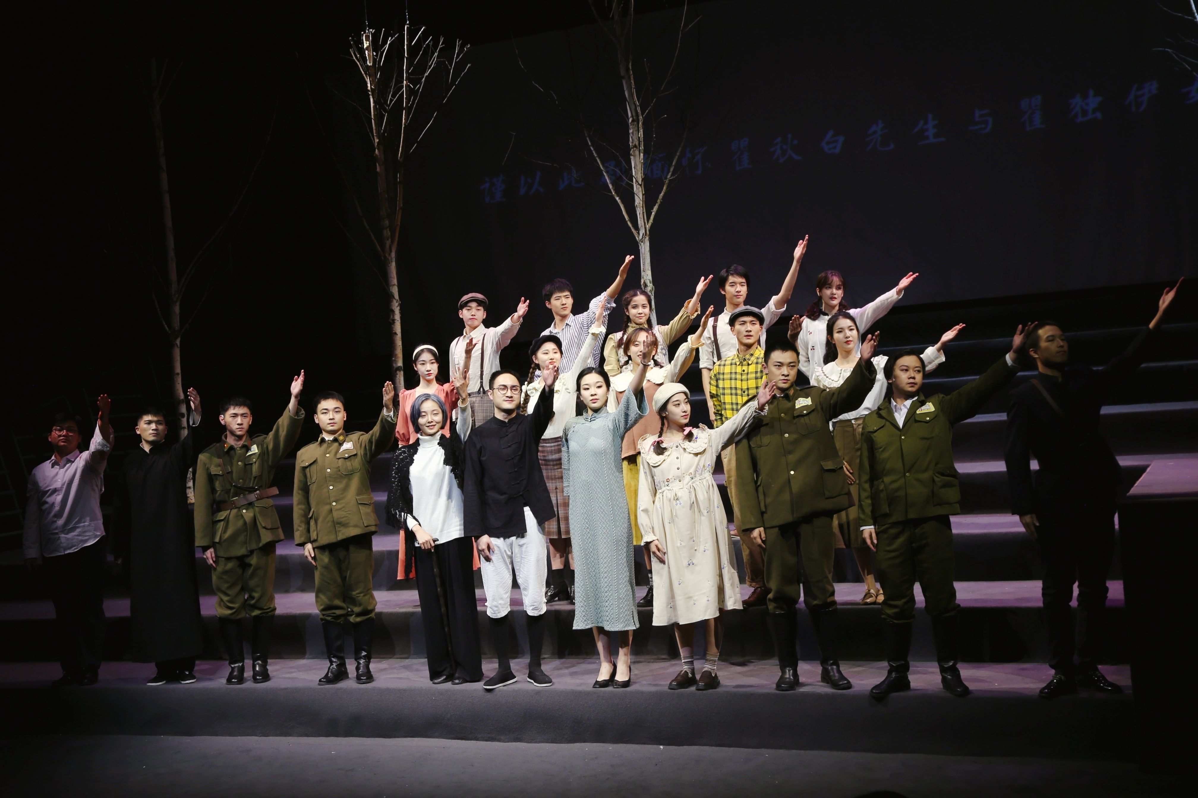 演出颠覆传统的观剧概念,打破镜框式的观演模式,调整了表演区和观众的位置,将舞台做了阶梯状、立体化的呈现,用音乐、舞蹈、实景、投影和话剧表演相结合的艺术形式一一再现了瞿独伊回忆里的那些温情画面。瞿秋白不再只是革命英雄,而是一个亲切可见的父亲、丈夫、良师益友。“秋之白华,秋白之华,你中有我,我中有你。”这是瞿秋白刻给妻子杨之华的印章,也是对妻子的深情告白。剧中呈现的温馨家庭生活,也让观众重新了解了更多历史细节。