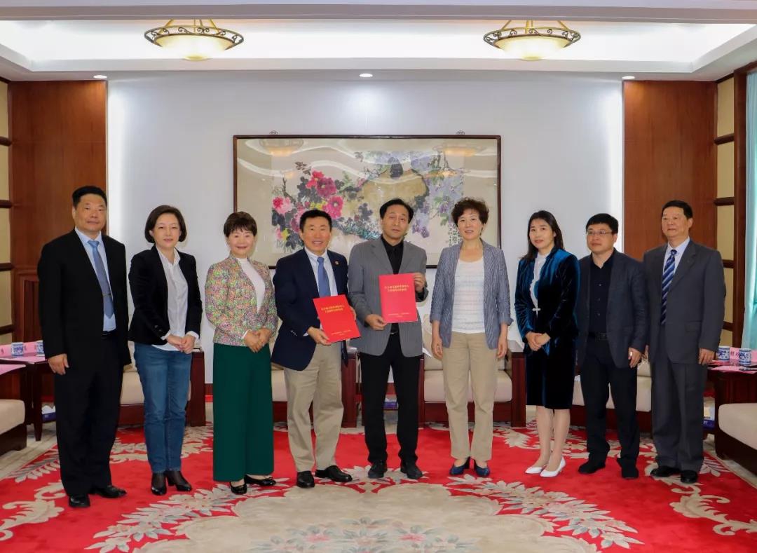 市委常委、统战部长华静与市侨联党组书记毛银玲等领导共同见证协议互换仪式