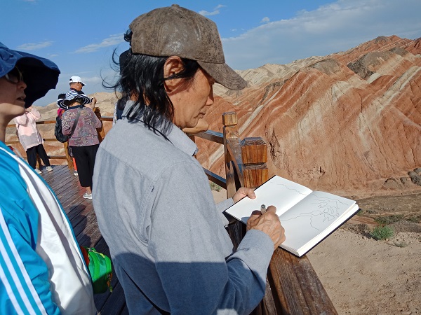 为响应“一带一路”倡议,感知西域文化魅力,用艺术赞美宣传“一带一路”风情,6月14日-19日,省侨联华侨书画院组织部分书画家赴古丝绸之路重要黄金路段和枢纽地带——甘肃,开展“一带一路”采风写生活动。采风团由省侨联副秘书长袁雯带队,省侨联华侨书画院院长朱道平,执行常务副院长章文熙,常务理事陆越子、吴勇、孙韵等13人参加活动。