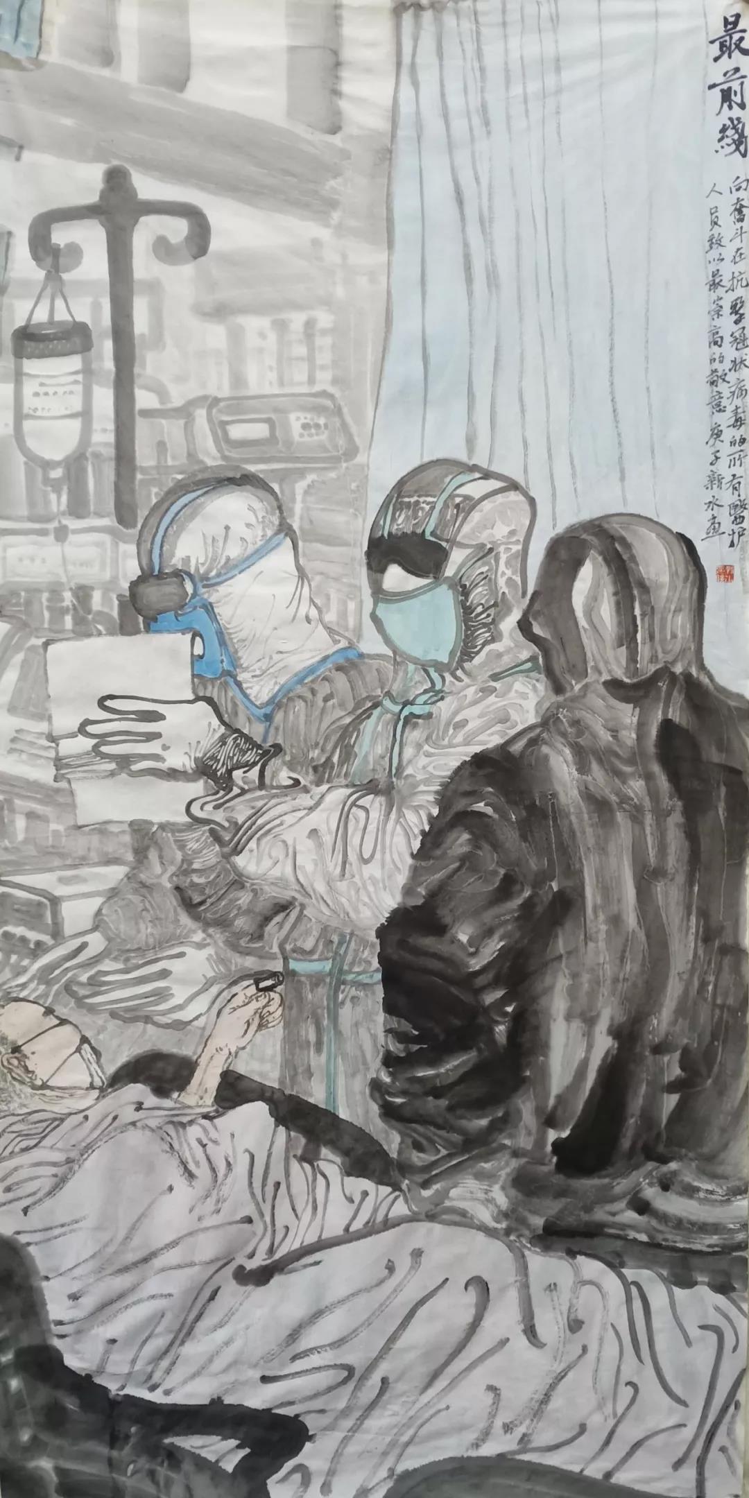 与国家与人民同呼吸共命运是艺术家的职责所在,抗疫最前线的军人、医护人员和工作人员临危不惧、义无反顾!他们是战士更是勇士!体现了不屈不挠的民族精神和勠力同心、共克时艰的信念与力量,向他们表达崇高的敬意!——王 平