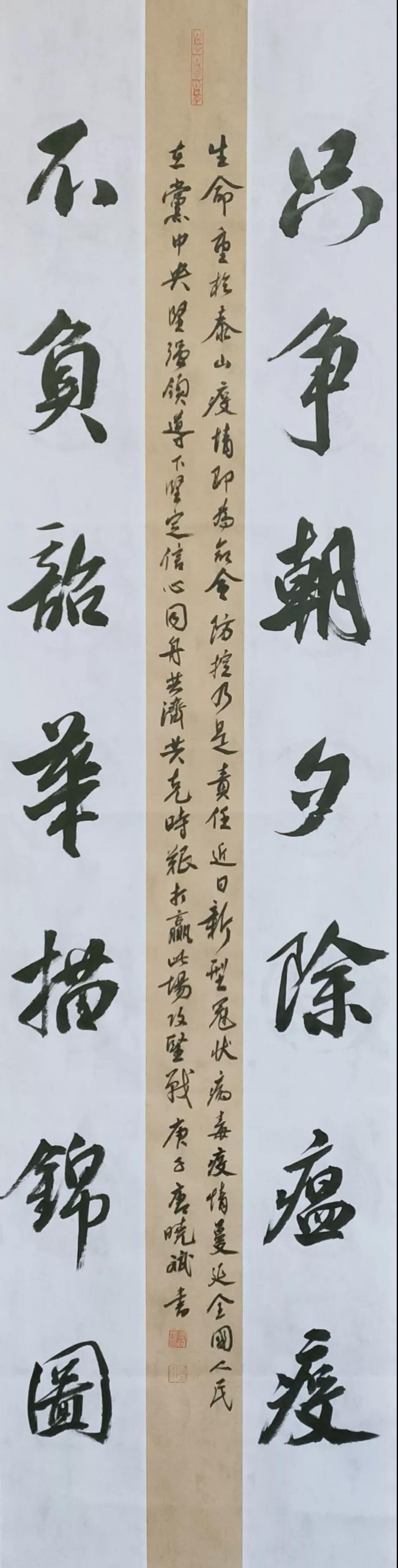 庚子春节,武汉新型冠状病毒蔓延全国,多地封城,足不出户,特创作“只争朝夕除瘟疫,不负韶华描锦图”一联,献给奋战在一线的医务工作者!——唐晓斌