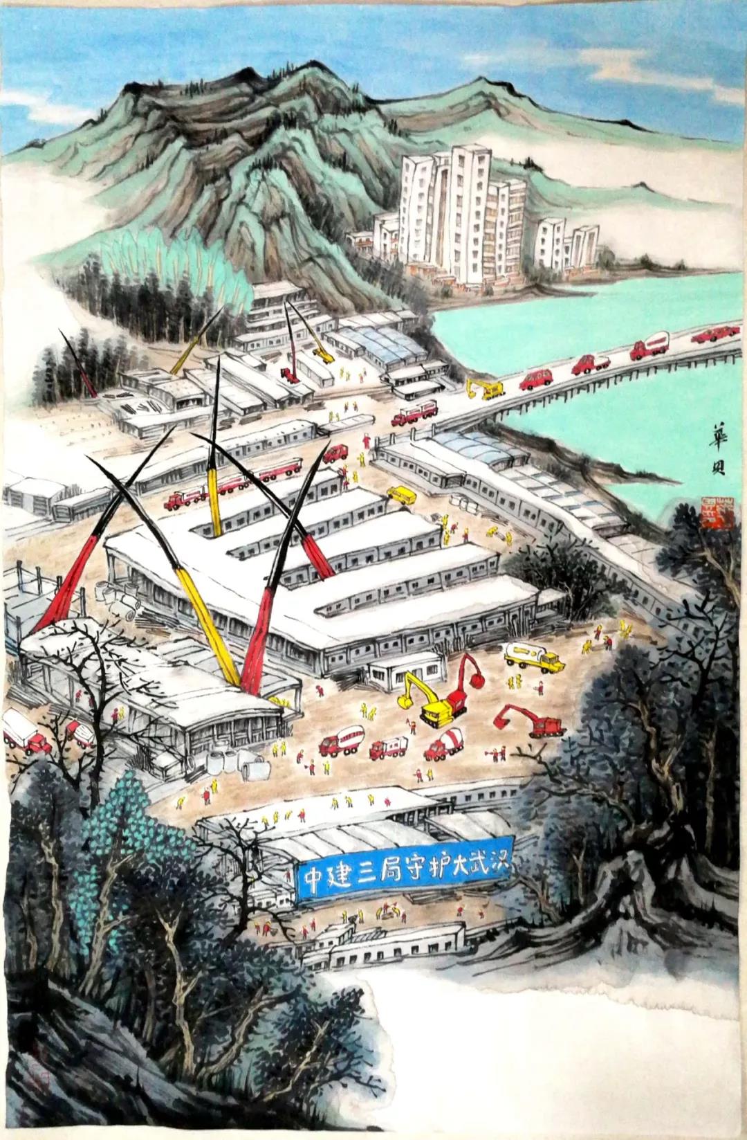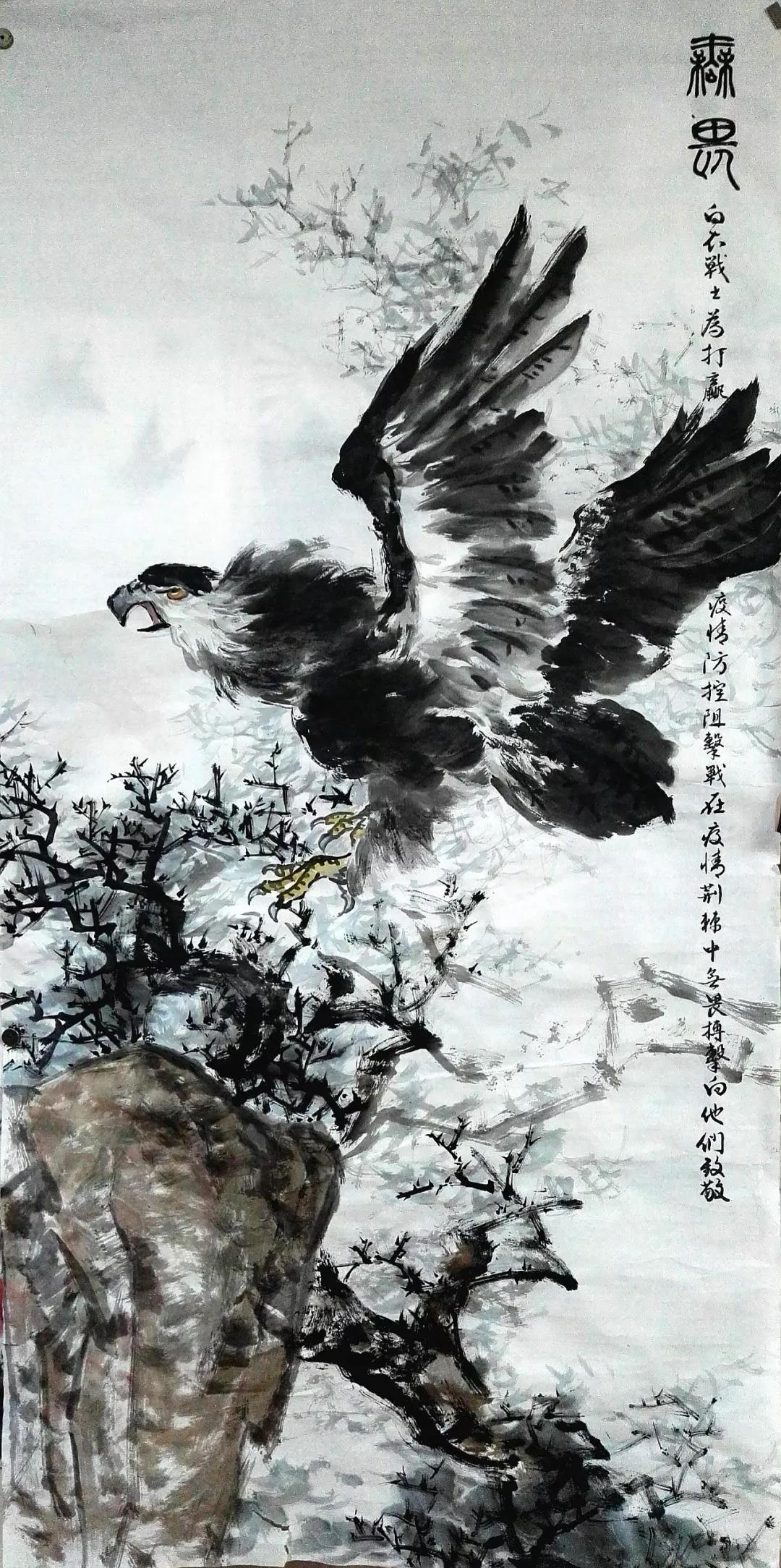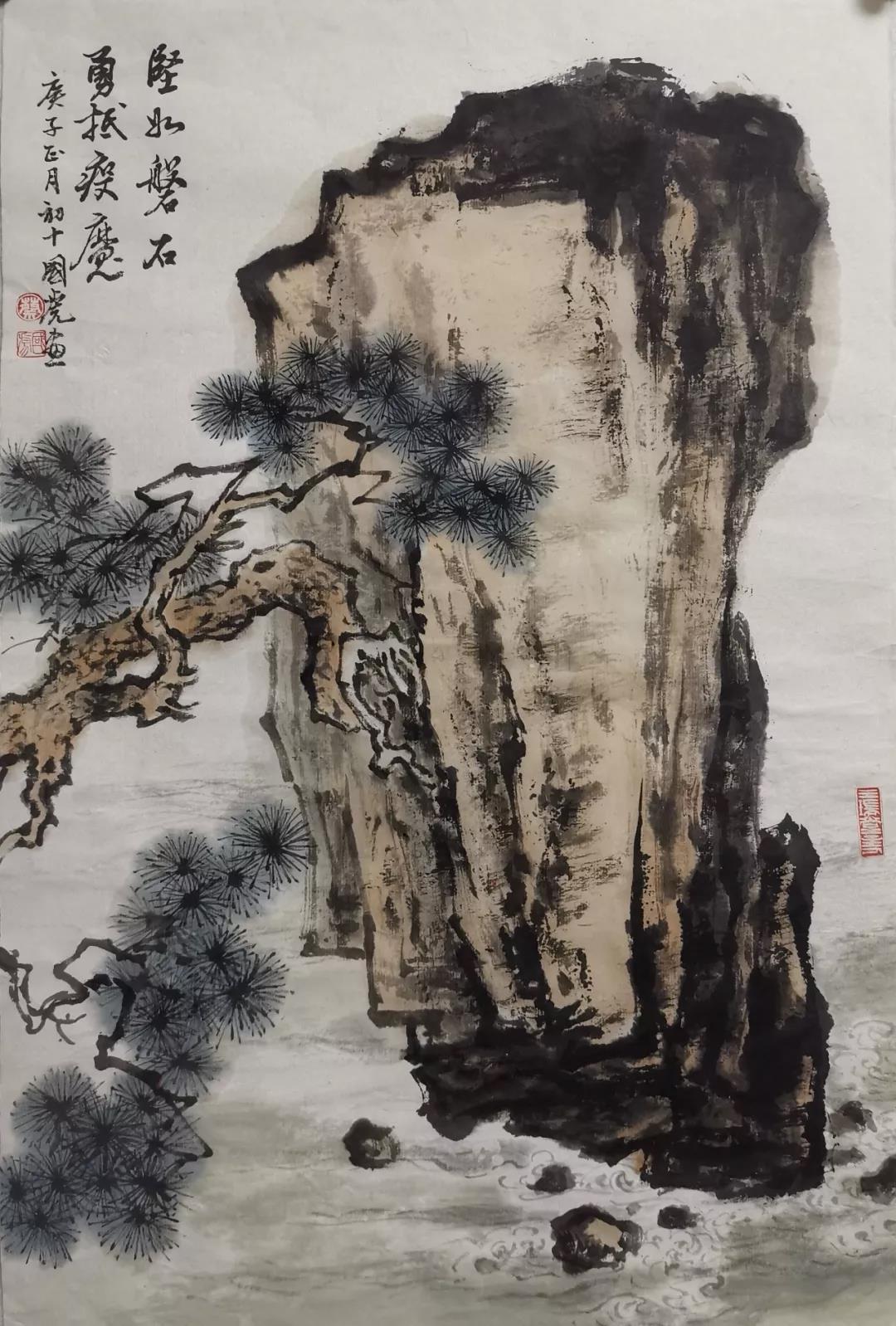 蔡国虎中国画《坚如磐石,勇抵疫魔》