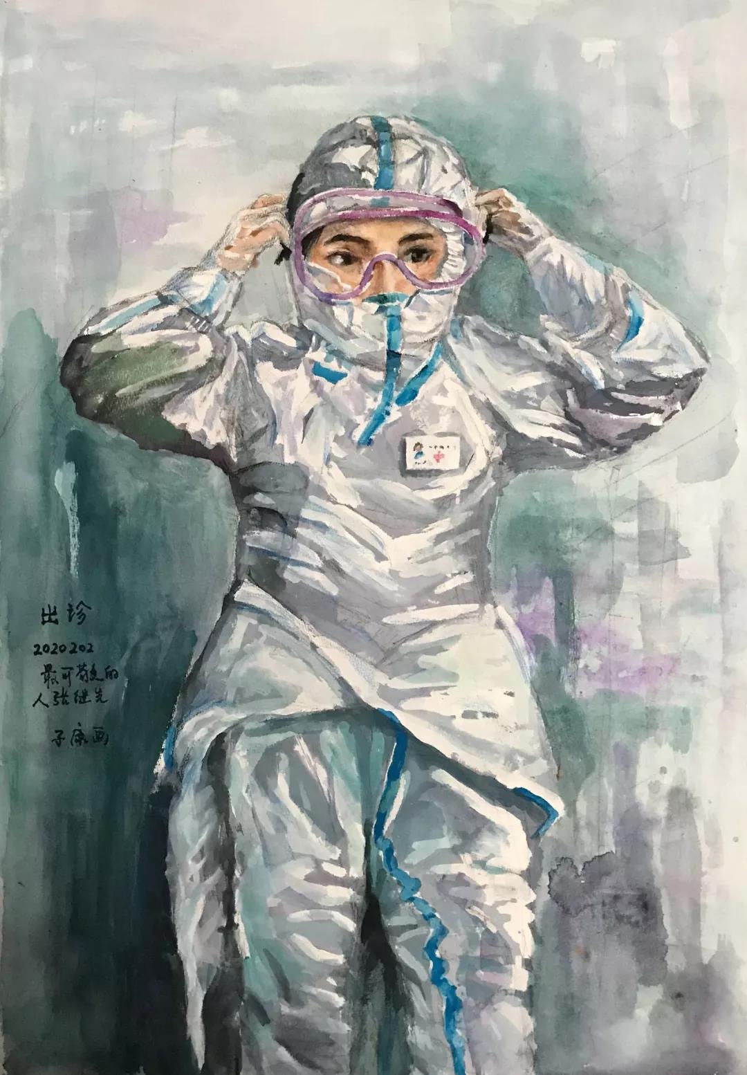 何子康水彩《出诊,献给2020年最可敬的白衣战士——张继先》