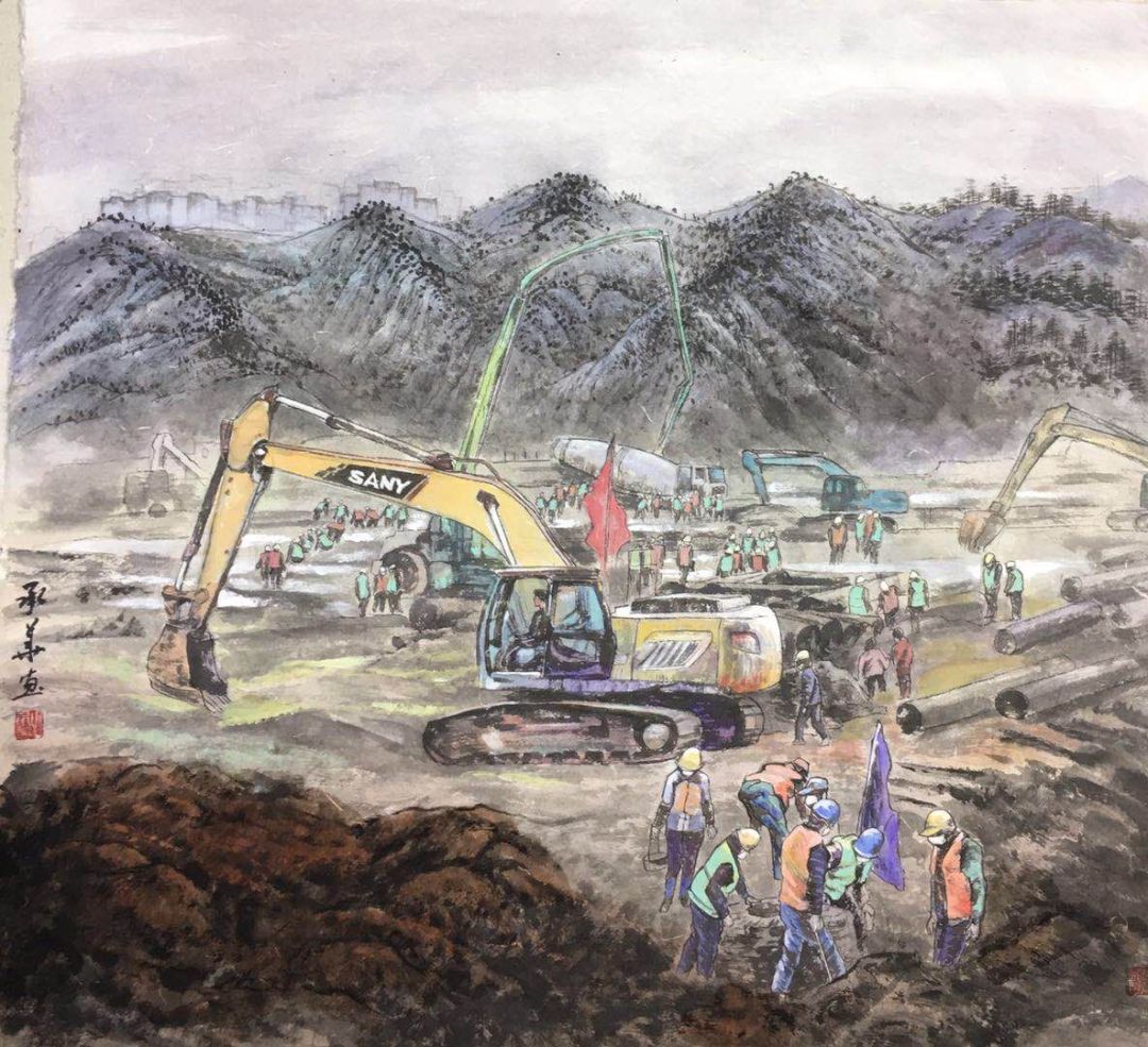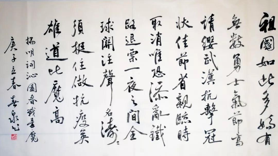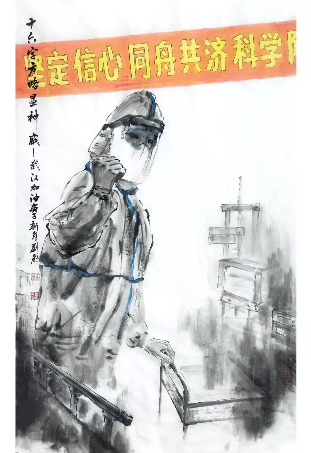 刘彪 中国画《十六字方略显神威——武汉加油!》