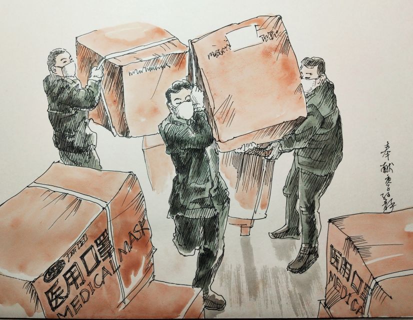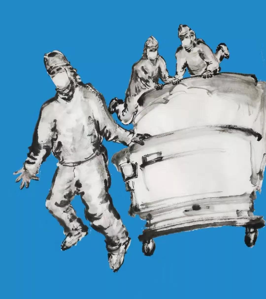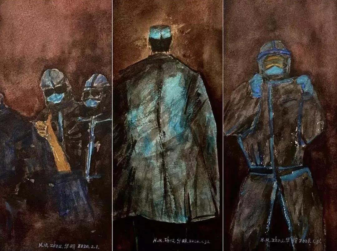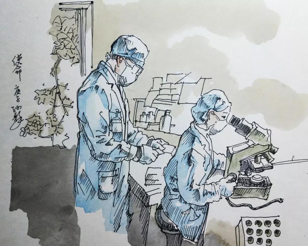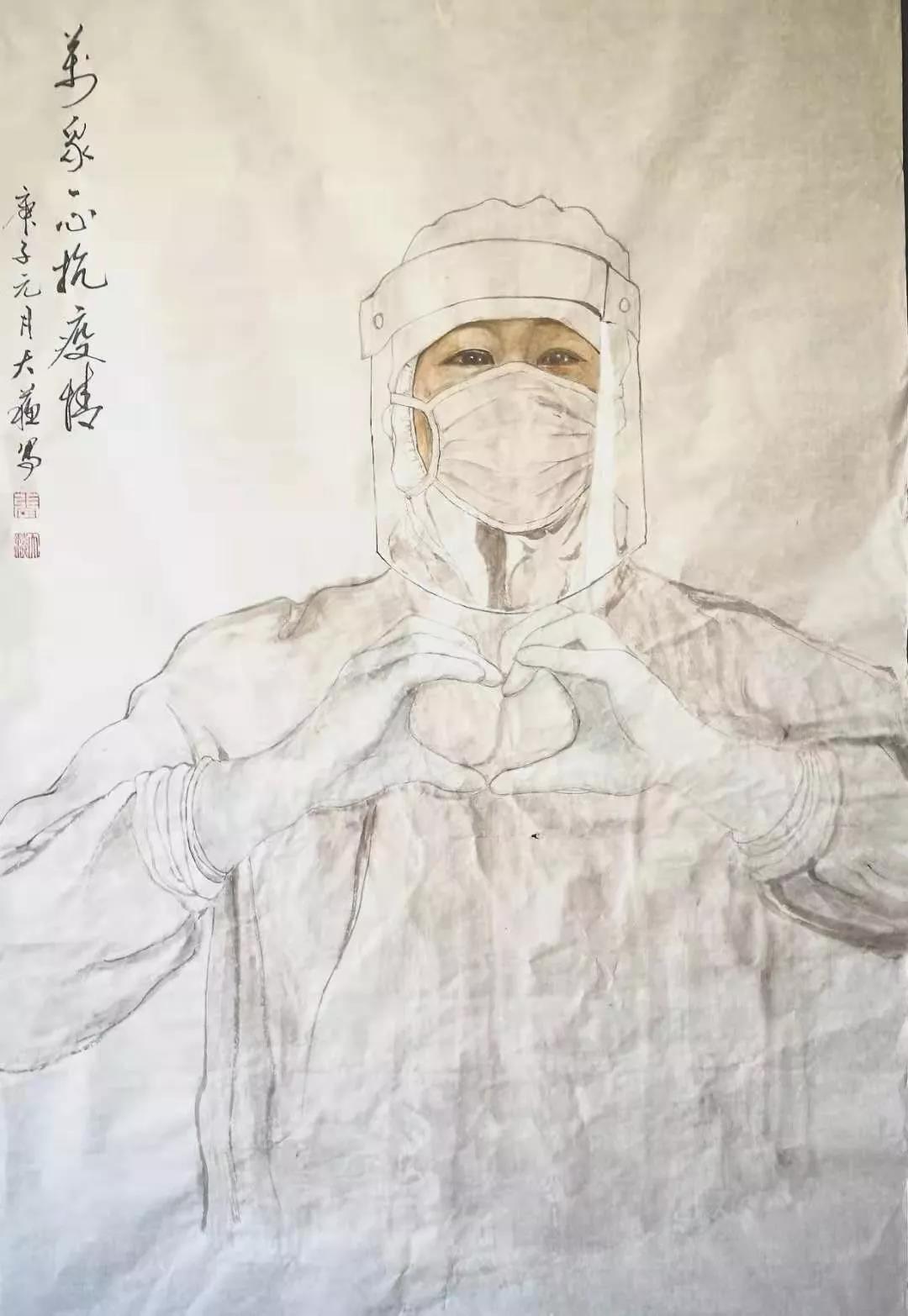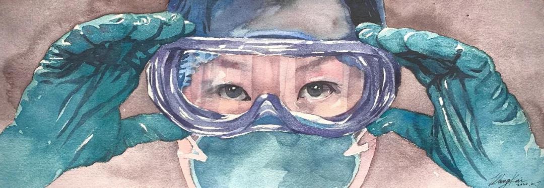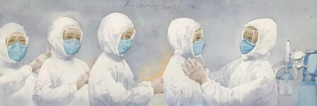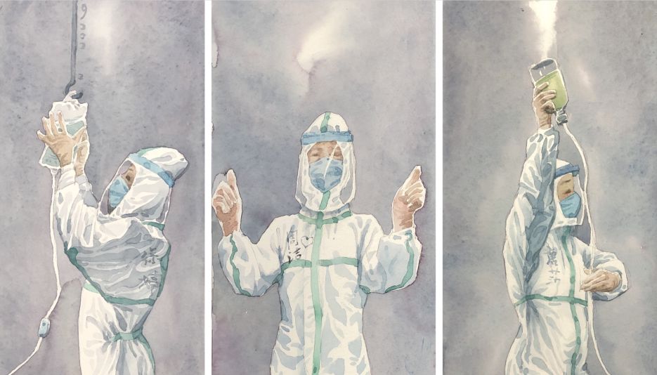 孙韵钢笔淡彩《使命——致敬抗疫医务工作者》
