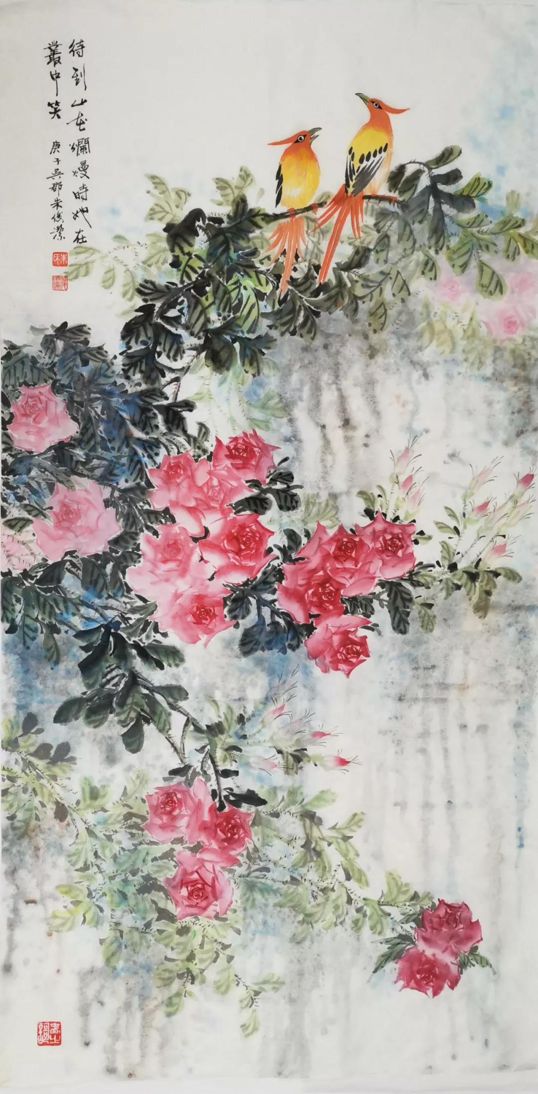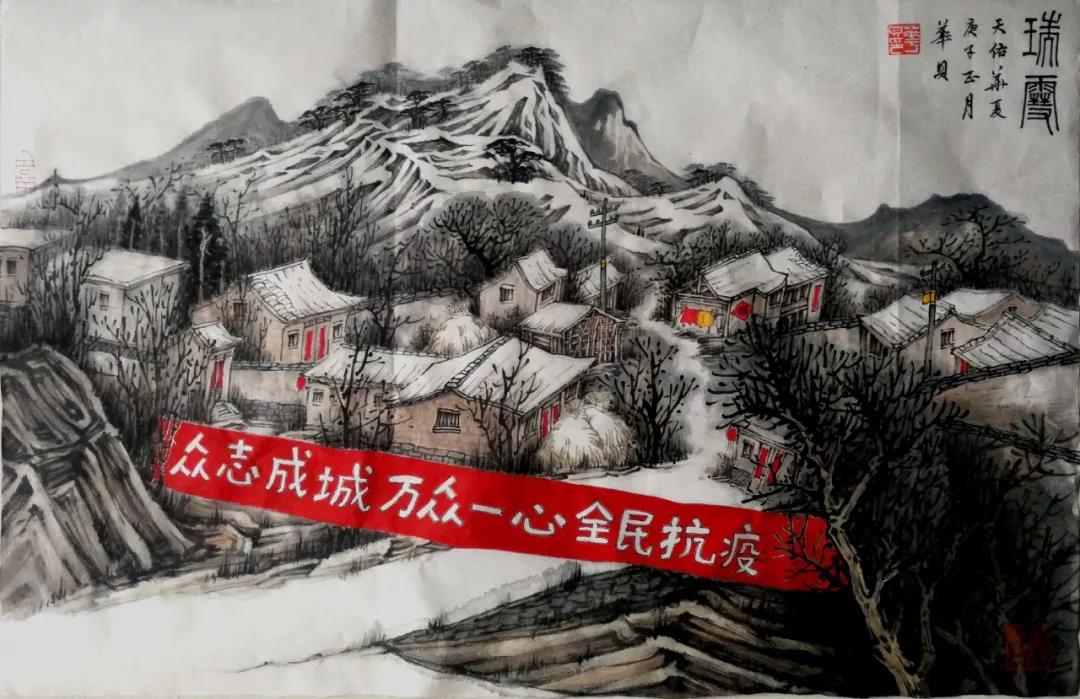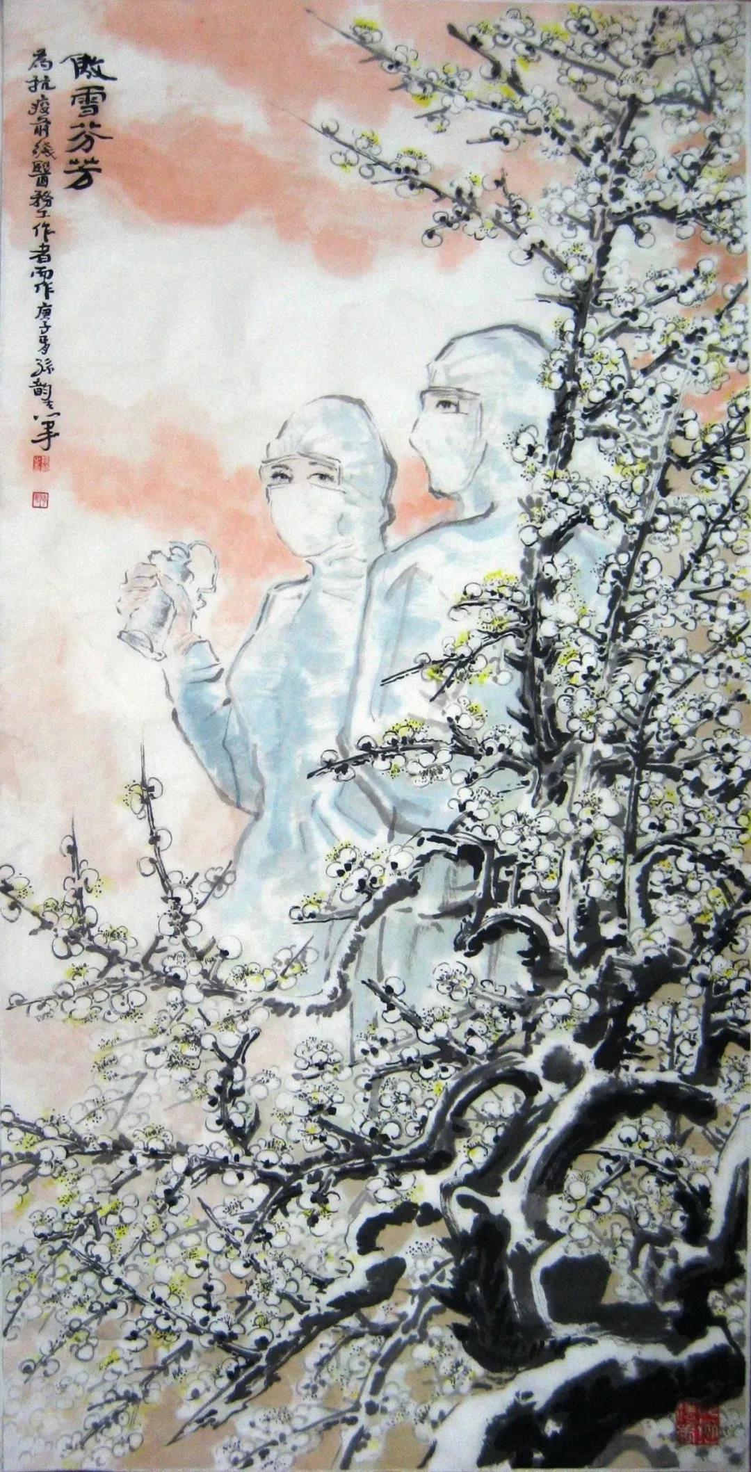 曹仁容 中国画《战胜疫情,拥抱希望》