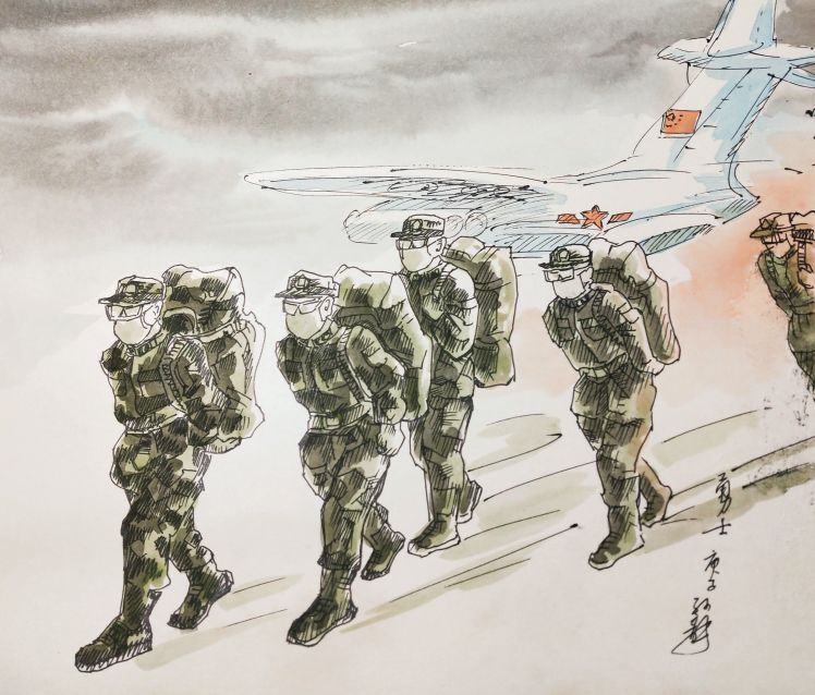 孙韵钢笔淡彩《勇士——致敬中国人民解放军》