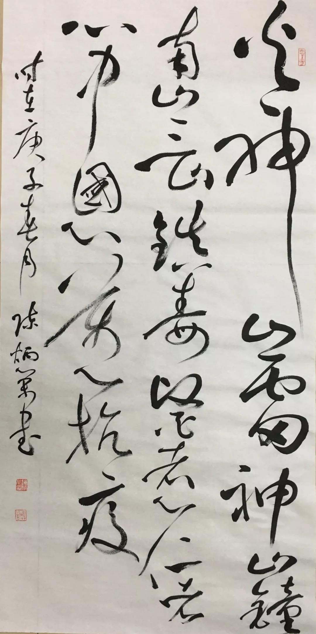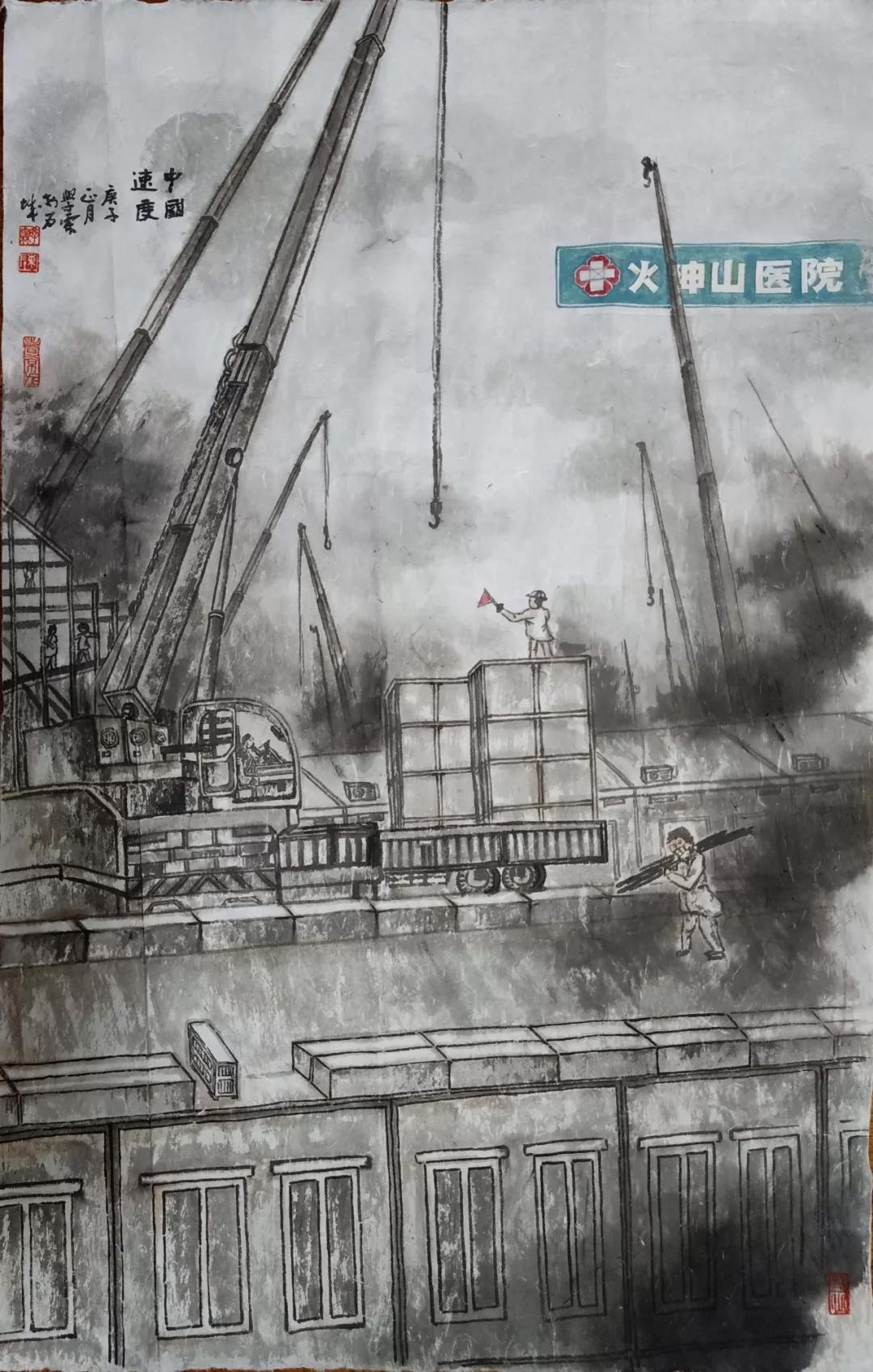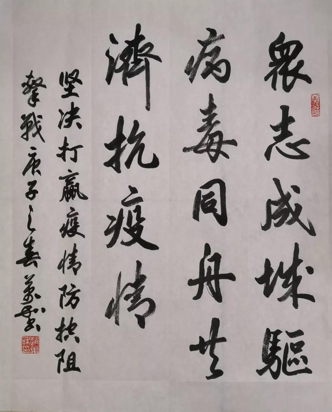 疫情就是集结号,防控就是使命担当。以笔为情,共克时艰。书此作品向奋战在疫情防控一线的战士们致敬!——陈红兵