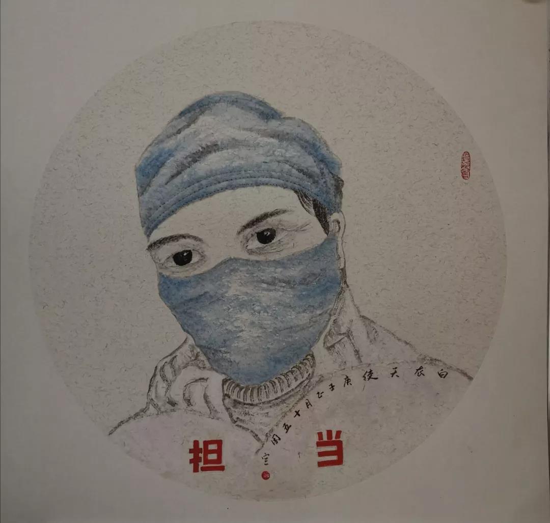 在这次新型冠状病毒疫情爆发期,奋战在抢救一线的工作人员不畏艰难,不畏病毒感染,夜以继日。特别是战斗在一线到医务人员,不辞辛苦抢救感染的病人,这种大无畏精神不仅是一种责任,更是一种担当!一件件可歌可泣的事迹,令众人动容、敬佩!此时此刻,我要用手中的画笔留下他们美丽的天使般的身影。祝愿他们吉祥安康,平安归来!——郑国定