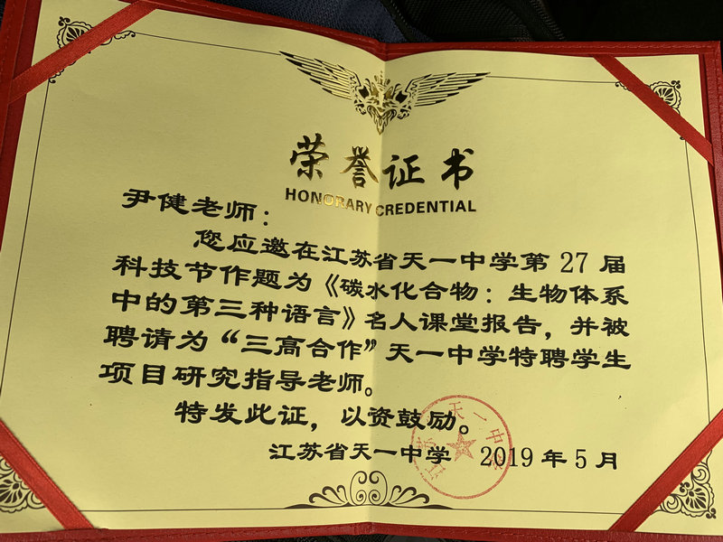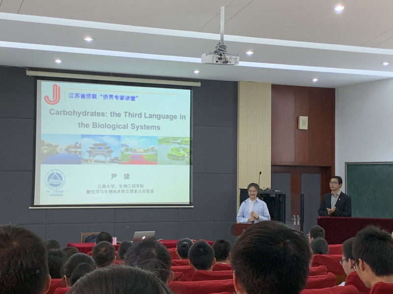 5月12日,由江苏省侨界专家联合会主办,江南大学侨联、江苏省天一中学承办的江苏省侨联“侨界专家讲堂”走进天一中学。江苏省侨界专家联合会委员、无锡市侨联副主席(兼)、江南大学侨联主席、江南大学生物工程学院副院长尹健教授为天一中学的学生做了题为《碳水化合物:生物体系中的第三种语言》名人课堂报告,用深入浅出的语言为学生讲述了生物工程科学的基础,提高了学生的科技素养,激发了学生对科学的兴趣,培养了学生的研究精神、创新精神,深化了学校的科技教育,为优秀的高中学子打开了一扇通往科学前沿的大门。