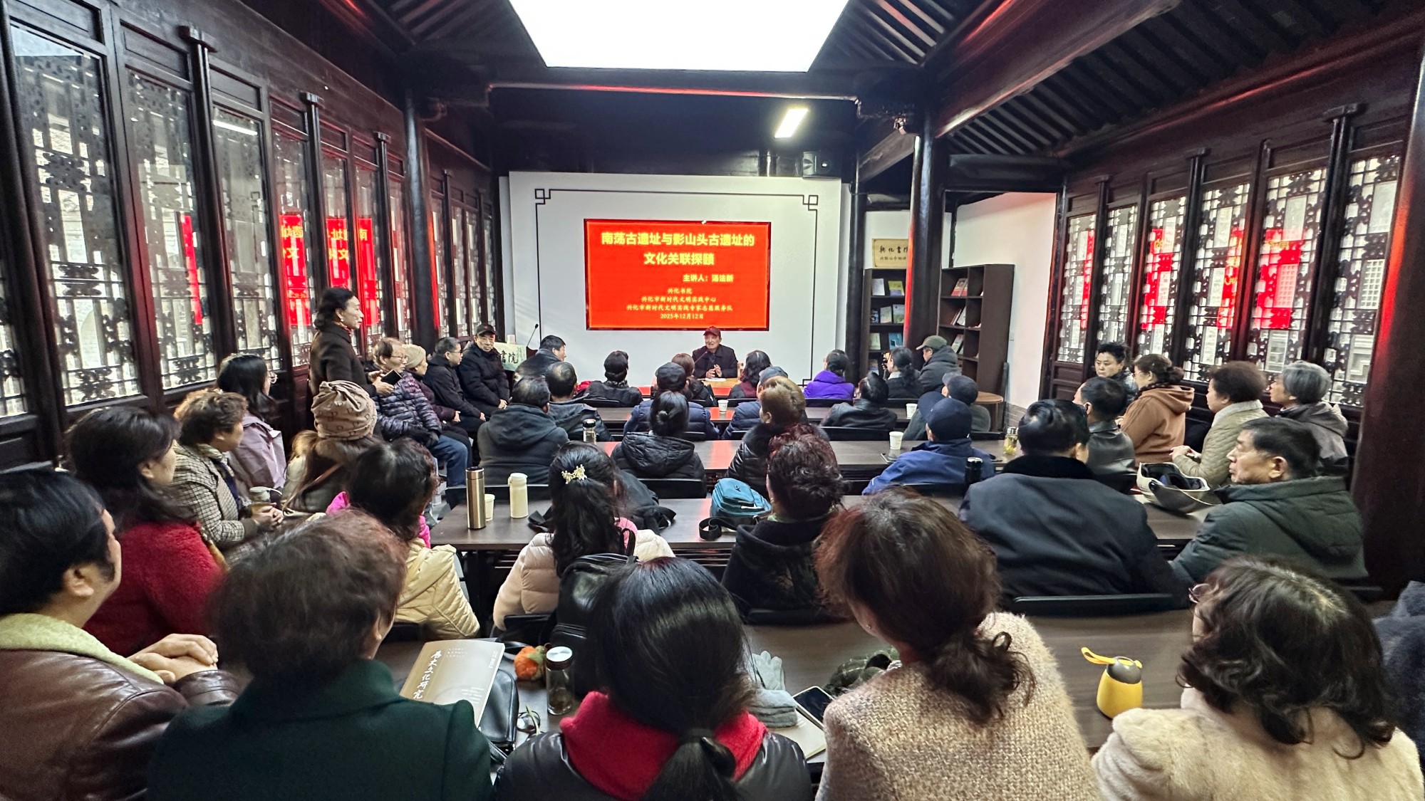 日前,兴化市昭阳街道侨联主席汤法新在侨界人士文化交流基地兴化书院开展《南荡古遗址与影山头古遗址的文化关联探赜》专题讲座,与侨界人士共同探寻里下河史前文明的神秘面纱,也为兴化历史文化名城的精神内核增添一份古遗址文脉的镌刻。