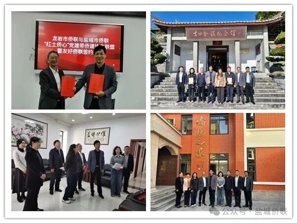 在龙岩市,盐城市侨联一行围绕“红色引领+侨务融合”主线开展观摩学习。走进主席园,大家向毛泽东同志雕像敬献鲜花、肃立瞻仰,深切缅怀老一辈无产阶级革命家的丰功伟绩。在古田会议会址、古田会议纪念馆、协成店和中兴堂,大家系统学习“思想建党、政治建军”的光辉历史,接受深刻的思想淬炼与精神洗礼。在华侨历史博物馆、邓子恢纪念馆,大家深入探寻侨胞爱国爱乡、心系桑梓的家国情怀,感悟红色文化与侨文化深度融合的价值内涵。其间,市侨联一行还走访了龙岩同心圆护理院、标致矿泉水公司及新罗区“侨胞之家”,就精准为侨服务、助力侨企高质量发展等实践路径交换意见。座谈会上,两地侨联围绕党建带侨建、资源整合共享等方面达成共识,签订“红土侨心”党建带侨建协作联盟与友好侨联协议书,建立常态化合作机制。
