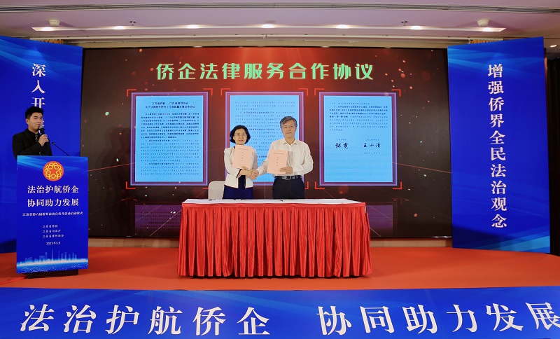 仪式开始后,与会领导共同启动“法治护航侨企,协同助力发展”——江苏省第六届侨界“法治宣传月”活动,省侨联、省律师协会共同签订法律服务侨资企业高质量发展合作协议,王小清向广大社会律师宣读了“法治护航侨企,协同助力发展”倡议书。