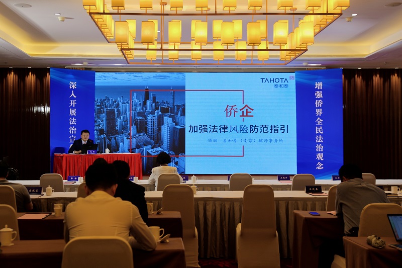 最后,省律师协会青年律师工作委员会副主任、省侨界法顾委委员、泰和泰(南京)律师事务所主任钱朋围绕“侨企加强法律风险防范工作”进行了专题授课培训。