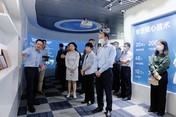 在东集技术股份有限公司,大家了解到该公司是制造物联网自动识别与数据采集产品的国家高新技术企业,形成对外国公司同类产品的完全国产替换。大家认真了解了公司产品研发、成果转化和市场应用情况,观看了产品演示片。在侨资企业南京世和基因生物技术股份有限公司,公司创始人、CEO邵阳博士详细介绍了公司发展历程、高通量测序技术在个体化精准医学领域的研究和临床转化应用成果。大家走进企业生产车间和实验室,了解公司产品和检测流程,与企业管理和技术人员深入交流。下午,大家还到南京江北新区红色广场参观了红色文化展陈馆,感悟革命先辈们的高尚情怀,赓续红色血脉,汲取奋进力量。