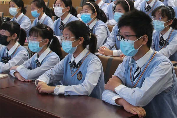 南京市第五十四中学的部分同学们线下参加了课程,并通过现场视频连线的方式与海外华裔青少年进行了“云端”互动。