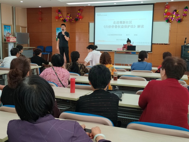 邀请了江苏漫修律师事务所陈芊律师,结合侨法宣传月主题,为辖区侨眷们解读了《归侨侨眷权益保护法》及《民法典》之日常生活中的常见法律问题。陈律师通过生动形象的案例,使大家充分认识学习侨法和民法典的重要意义和作用,对《民法典》有了更全面、更准确、更深刻的了解,同时提高了大家学法、知法、用法的自觉性,增强了依法维护自身权益的意识。社区侨眷胡叔叔说道:“陈律师用通俗易懂简明扼要的语言介绍了《归侨侨眷权益保护法》,让我进一步了解怎样履行自己的权力和义务!”