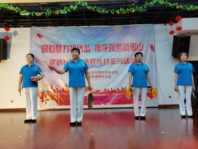 结合社区侨务工作实际,举办了“同心聚力护侨益 携手筑梦新惠山”文艺活动,本次活动以文艺表演、有奖问答的形式相互穿插完成。社区侨眷胡志钊自编三句半《法治社会真是好》,朗朗上口,受到了现场观众的一致好评;侨眷胡和平等人演唱的《唱支山歌给党听》,唱出了对祖国、对党的热爱之情,将演出推向了高潮。