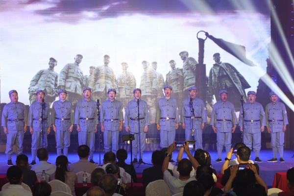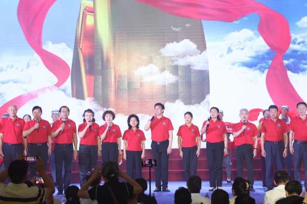 为弘扬伟大抗战精神,凝聚侨商爱国情怀,激发民族复兴奋斗动力,侨商联合会广泛宣传、精心筹备,组织15名理事赴现场参加活动,用艺术表演传递侨界心声。江苏富有文化旅游开发有限公司董事长陈宽有率队登台,合唱《游击队之歌》《到敌人后方去》,南京飞特文化传播有限公司总经理庆飞带来诗歌朗诵《不朽的抗战》。最后,全体参会理事齐唱《没有共产党就没有新中国》,用激昂的歌声将整场音乐会推向高潮。