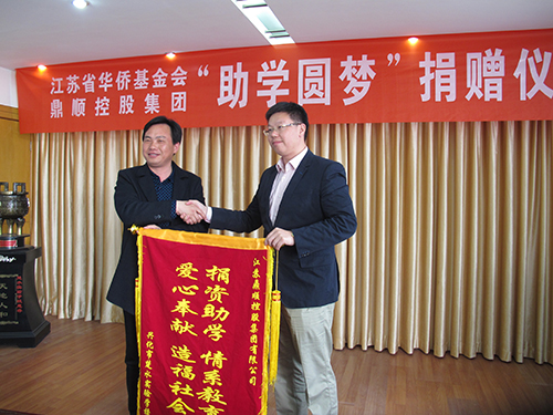 经泰州市侨联牵线联系,本次“助学圆梦”计划是江苏省华侨公益基金会、江苏鼎顺控股集团向社会奉献爱心的活动之一,江苏鼎顺控股集团将每年捐赠2万元资助兴化市楚水实验学校品学兼优的贫困学生完成学业。兴化市楚水实验学校负责受赠学生的评选、公示和管理工作。