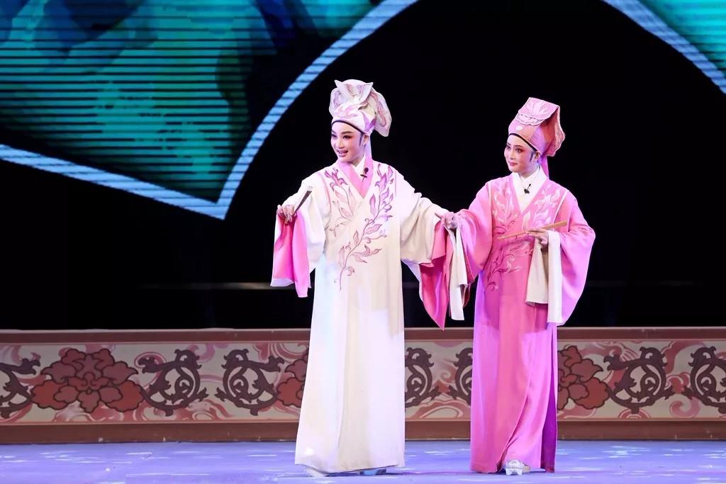 扬州市扬剧研究所优秀青年演员游佳琦表演的昆曲《林冲夜奔》是昆曲传统武生戏,既讲究唱工又讲究做工,身段极其繁复,并且整出戏都是边舞边唱,这对表演者的表演技术和功力要求很高,游佳琦的精彩表演赢得一阵阵掌声。河南豫剧院著名演员范静表演的《花木兰●谁说女子不如男》,以独特的发声技巧和演唱方法,凸显出豫剧的铿锵大气和粗放豪迈。安徽省黄梅戏剧院优秀青年演员张小威、邬云为观众们带来黄梅戏《春香传》选段“爱歌”和《天仙配》选段“夫妻双双把家还”,把朴实善良的民众对于美好爱情的向往演绎得淋漓尽致。浙江小百花越剧团著名演员周艳、李霄文为观众演唱了越剧《梁祝●十八相送》把梁祝故事演绎得动人心扉,现场观众被梁山伯与祝英台的凄美爱情所感染,对演员的表演报以热烈的掌声。