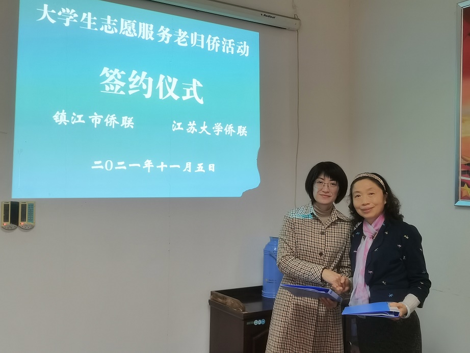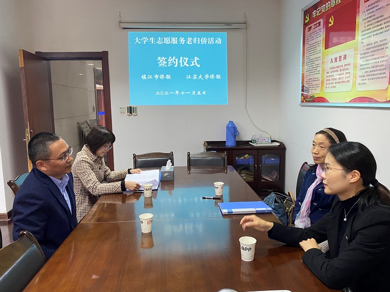 为进一步推动党史学习教育走深走实和贯彻落实省教育厅、省民政厅、共青团江苏省委员会、省侨联《关于在全省高校开展关爱老归侨“一对一”志愿服务公益活动的意见》要求,11月5日上午,镇江市侨联与江苏大学举行了“关于开展大学生志愿服务老归侨活动”合作签约仪式。镇江市侨联党组书记、主席王永新,市侨联副主席兼秘书长黄蓓,江苏大学关工委副主任兼秘书长、校侨联副主席汤静霞,江苏大学团委副书记成珊出席了签约仪式。