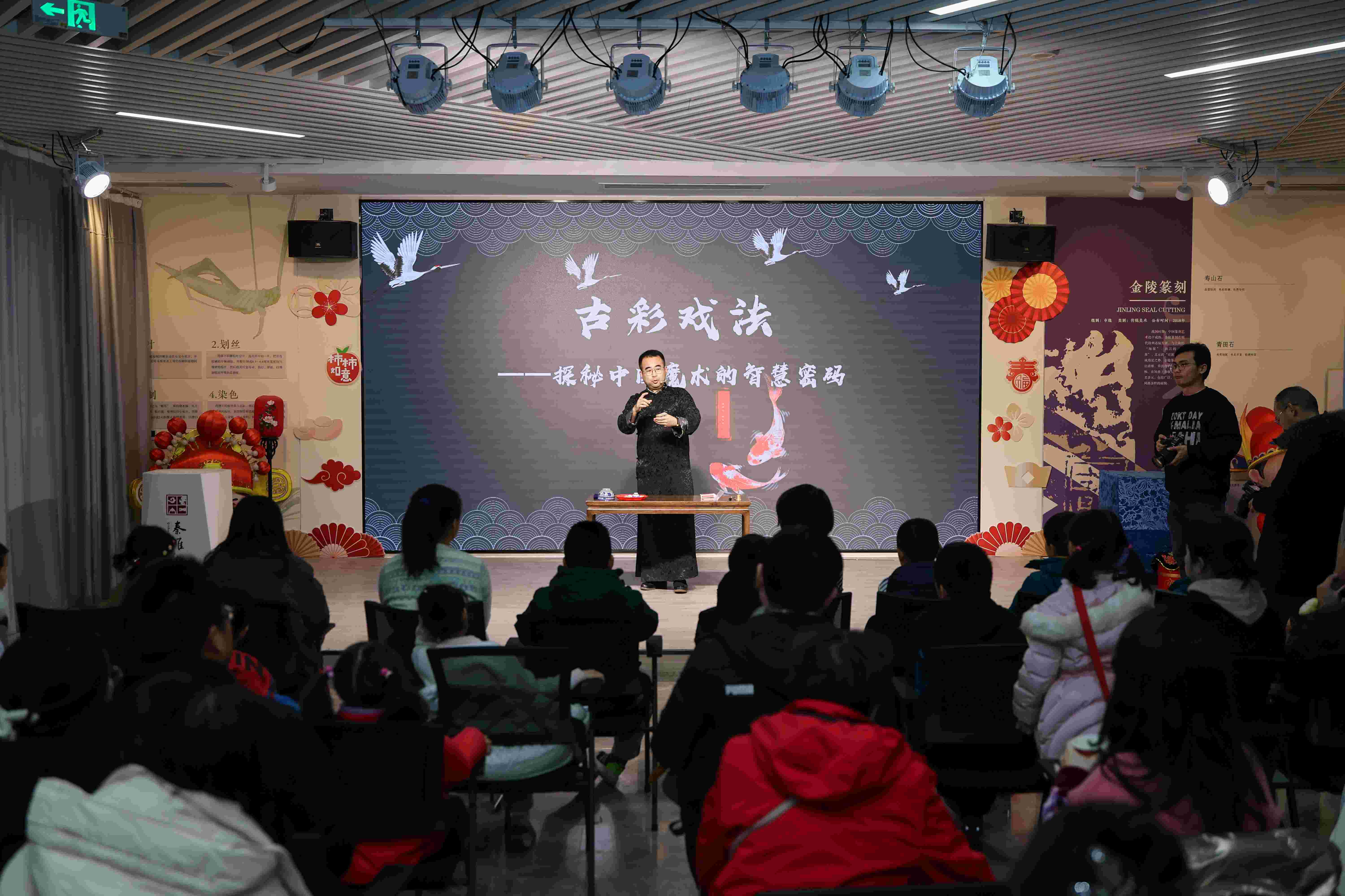 本次活动在非遗馆专业讲解员和工作人员的带领下开启。在“导览研学·非遗初识”环节,古琴演奏家指尖流淌出悠扬琴音,少年演员献上刚劲有力的武术表演,讲解员结合春节习俗展开互动式讲解,非遗技艺和传统艺术相映成趣,让孩子们从“看热闹”变成“懂门道”,为体验活动筑牢了知识根基;在“古韵游艺·欢声满堂”环节,投壶纳吉、捶丸聚福气等传统游戏,复原了古代春节市井间的娱乐活动,让侨胞家庭体验纯粹的古典乐趣;在“戏法研赏·古艺奇观”环节,讲解员进行非遗科普,用通俗语言讲解其历史渊源和“门子”(秘密)背后的古人智慧,让专家和孩子们在高潮迭起的观赏体验中,感受非遗的娱乐性与智慧性;在“马到成功·小飞马玩偶设计”环节,专业老师们分步教学,各家庭根据定制好的小马模版,尽情发挥想象力,为小马增添眼睛、尾巴、图案等,亲手完成一件基于农历新年美好寓意的创新产品设计,体验传统与创新的意义。活动现场还安排了“市集寻趣·年味带回家”环节,侨胞家庭手持非遗探访手册,在非遗市集里打卡云锦小件、金箔工艺品、木版年画等特色产品,与非遗传承人亲切攀谈、研习技艺。