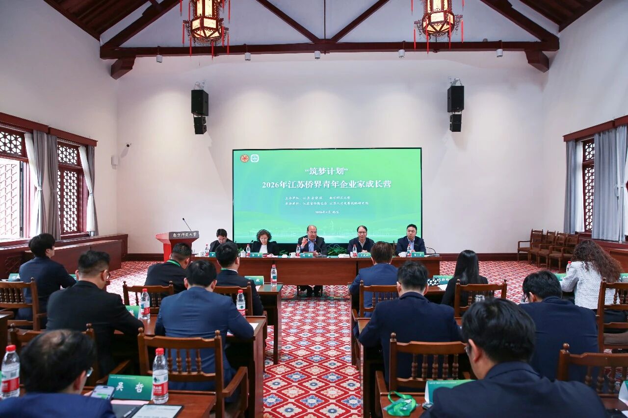为深入学习贯彻习近平总书记对江苏工作重要讲话精神,切实加强侨界青年企业家思想引领,为奋进新时代、建功“十五五”凝聚侨界力量,4月14日,由江苏省侨联与南京师范大学联合主办,江苏省侨商总会、江苏人才发展战略研究院共同承办的“筑梦计划”2026年江苏侨界青年企业家成长营在南京开营。江苏省侨联党组书记、主席刘标,江苏省社科联党组书记、副主席,江苏人才发展战略研究院院长王成斌,南京师范大学党委常委、组织部部长、统战部部长姜小东,南京师范大学人文社会科学研究院院长张振,以及来自新能源、智能制造、数字经济、生物医药、新材料、跨境贸易等重点领域的48名青年企业家出席开营仪式。开营仪式由省侨联党组成员、副主席兼秘书长张霓主持。