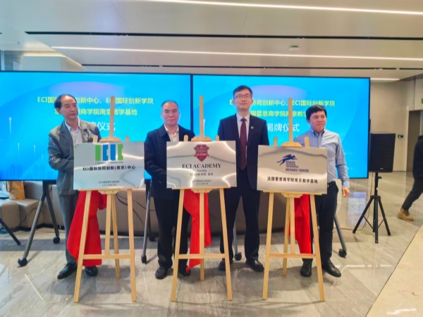 全体与会嘉宾的共同见证下,ECI国际协同创新中心与ECI国际创新学院暨法国雷恩商学院南京教学基地正式揭牌。两大平台的落地,将成为南京侨界青年对接国际创新网络、培育高端人才的“专属阵地”,助力建邺区打造具有侨界特色的科技创新高地。